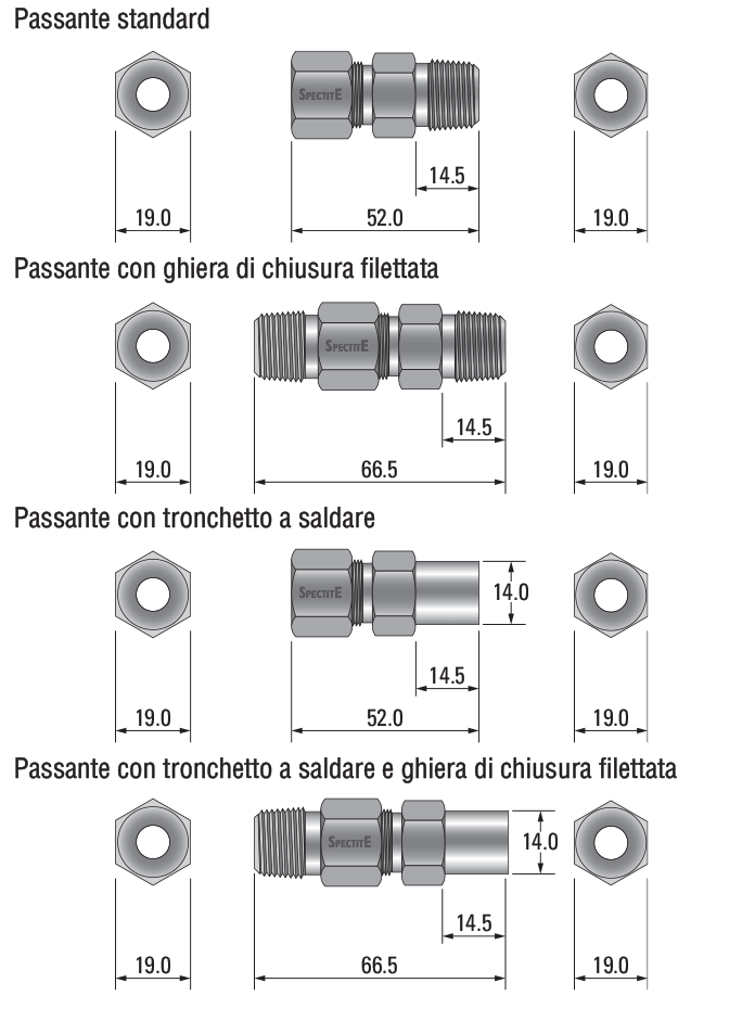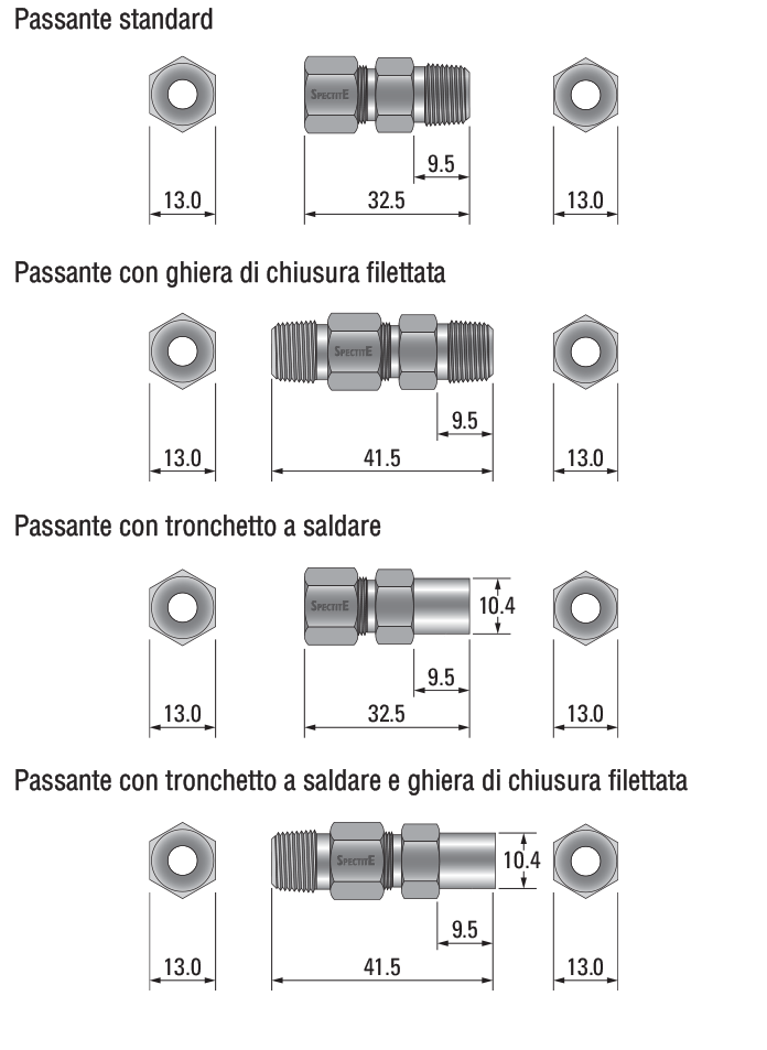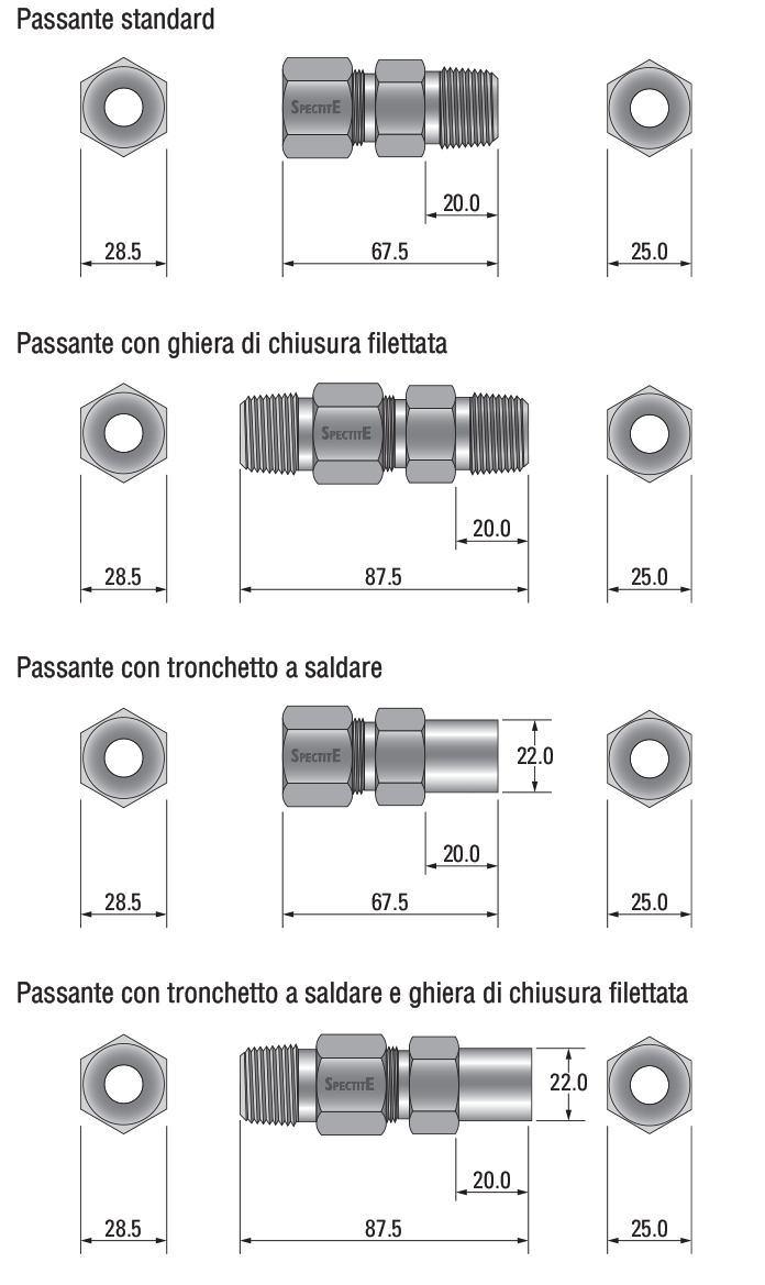 I passanti di tenuta Spectite® sono stati progettati per rendere agevoli l’assemblaggio e l’installazione. Le sonde o gli altri elementi inseriti si possono spostare, rimuovere o sostituire quando il passante non è soggetto a pressione o vuoto.