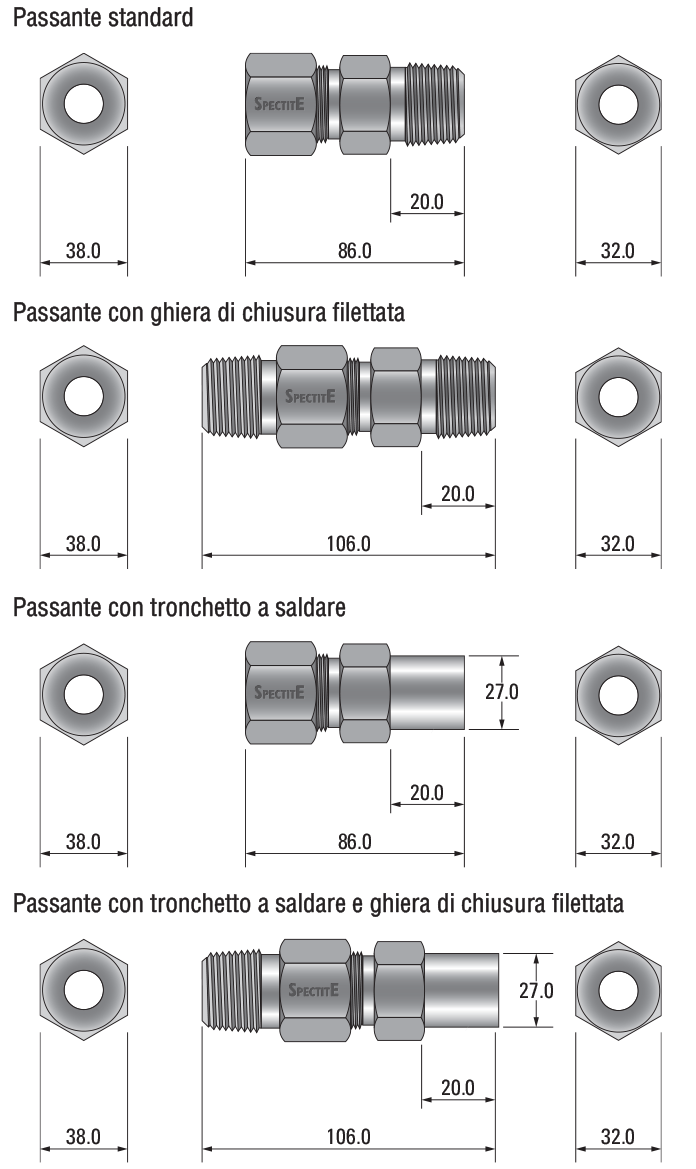 - Sono disponibili altri tipi di connessioni a processo, vedere Dimensioni dei passanti.